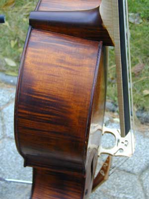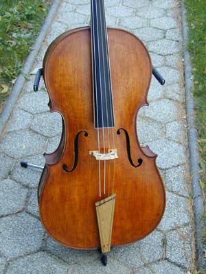 Das hier gezeigte Barock-Cello wurde speziell nach Kundenwünschen gefertigt. Das Ziel war, ein Cello zu konstruieren, das dem barocken Klangideal möglichst nahe kommt und dennoch, vor allem bei der Mensur, eine möglichst große Übereinstimmung mit einem modernen Violoncello aufweist. Um dies zu erreichen, musste zunächst ein längerer und schlankerer Hals verwendet werden als bei einem Barockcello. Auch der Korpus musste entsprechend vergrößert werden.